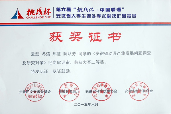 • 安徽新葡萄娱乐场798学院学子在第六届“挑战杯”安徽省大学生课外学术科技作品竞赛中喜获佳绩